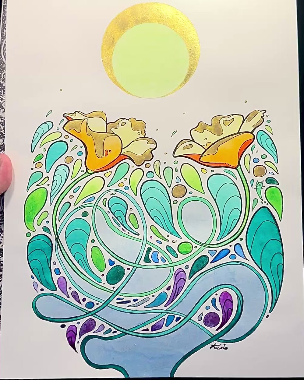Presented matted in a burnished grey-gold wooden frame made by The Frame Up in Santa Rosa